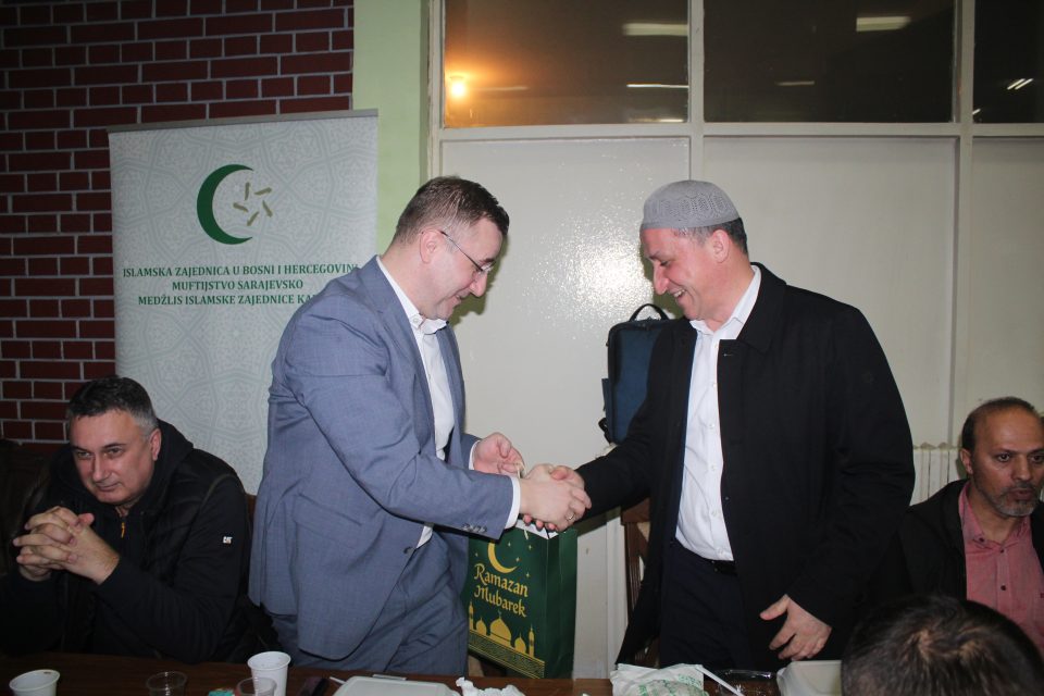 Posebnu duhovnu atmosferu iftarskom druženju dao je gost iz Trabzona u Republici Turskoj, hafiz koji je proučio ezan i time označio kraj posta, nakon čega su prisutni zajedno podijelili iftarsku sofru.