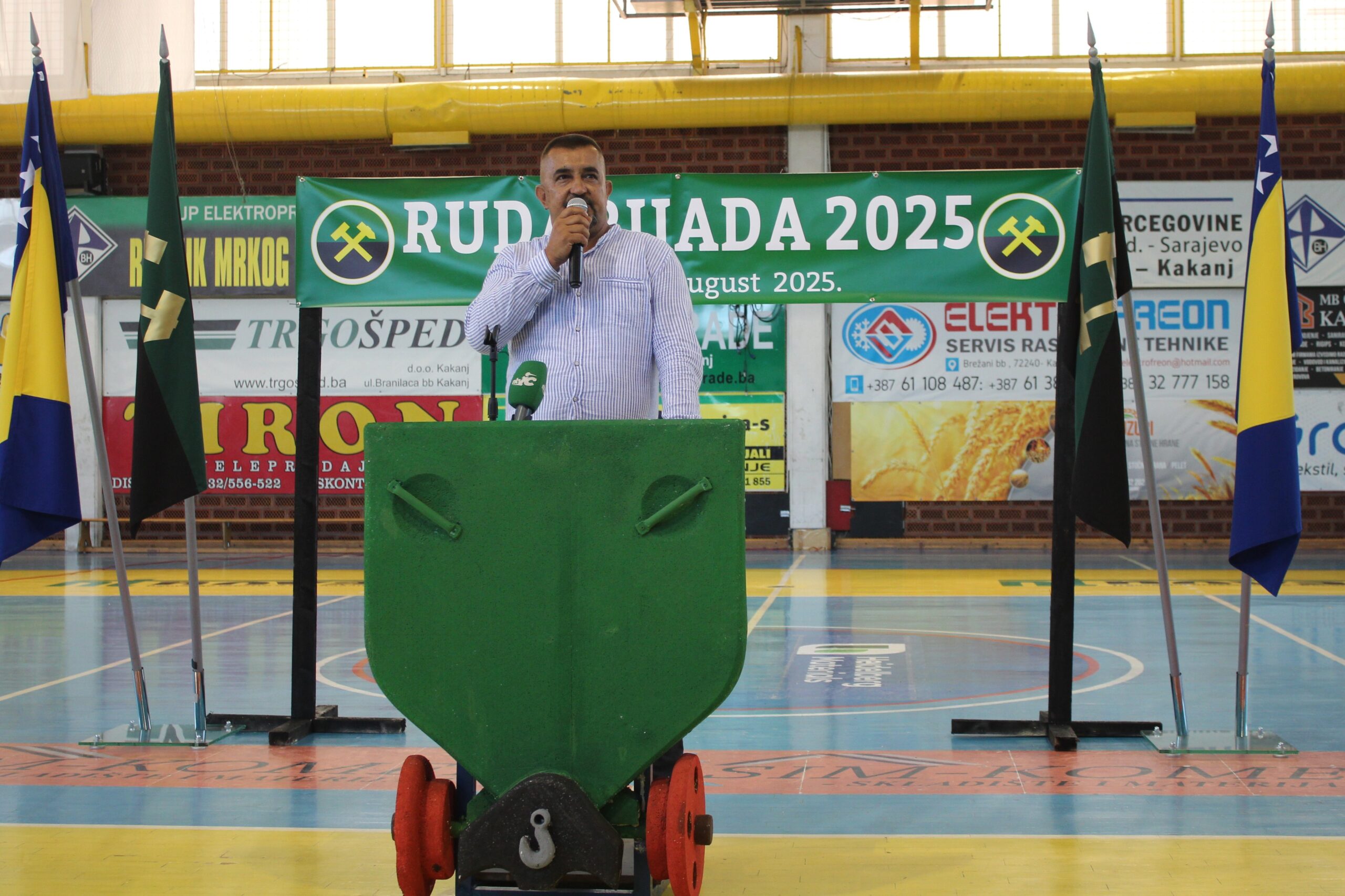 Učesnike i goste ovogodišnje Rudarijade prvi je pozdravio predsjednik Sindikalne organizacije RMU Kakanj Abdel Fazlić, izrazivši zadovoljstvo što je upravo Rudnik Kakanj tehnički domaćin sportskih igara “najčasnijih i najboljih radnika Bosne i Hercegovine” i zahvalivši se Rudniku i Općini za podršku u organizaciji ovog događaja, uz poruku: