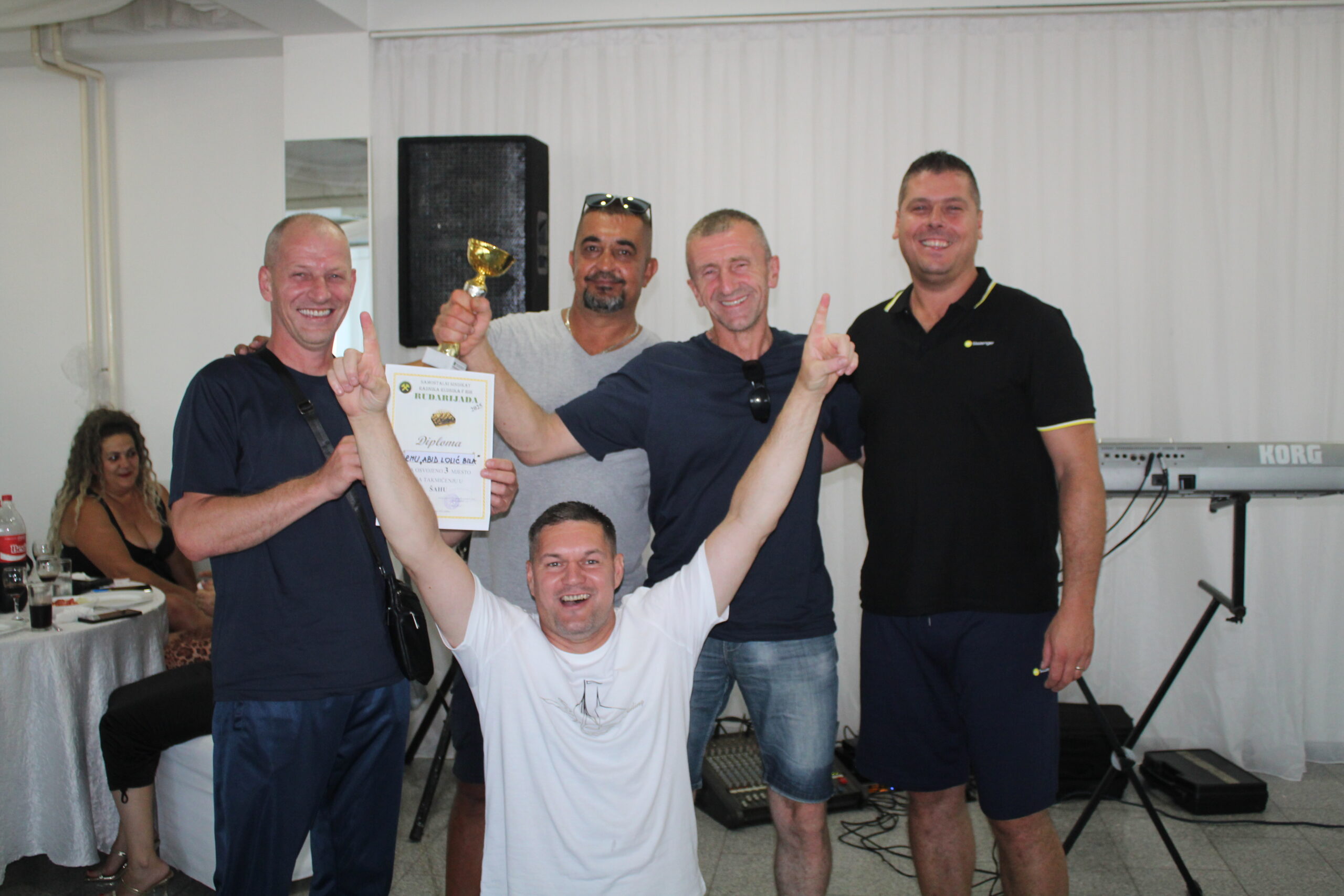 Nakon službenog dijela, nastavlja se druženje rudara i gostiju, uz pjesmu, smijeh i prisjećanje na uspješne sportske duele i zajedničke trenutke.